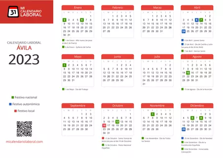 Almanaque de festivos en Ávila para el año 2023