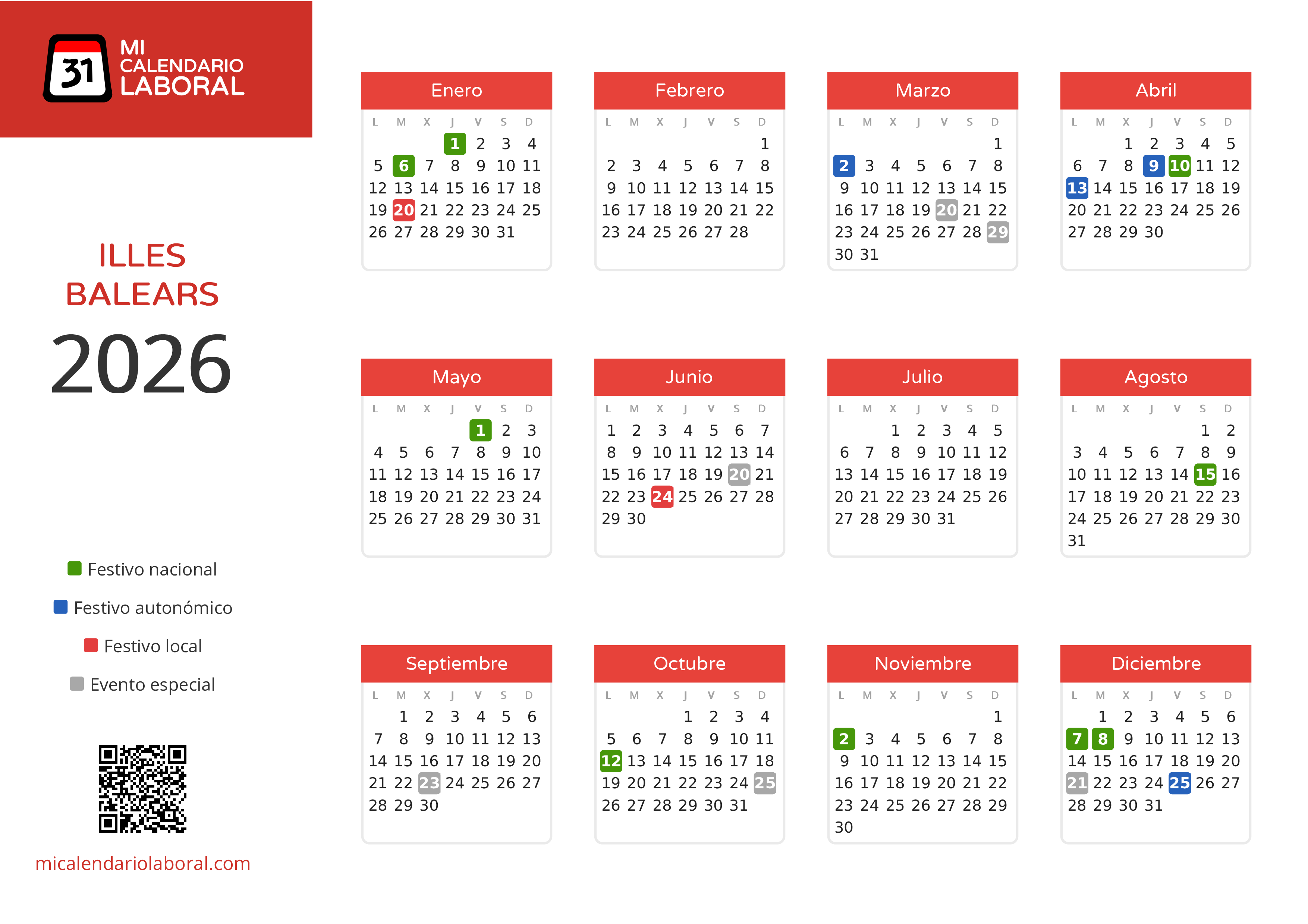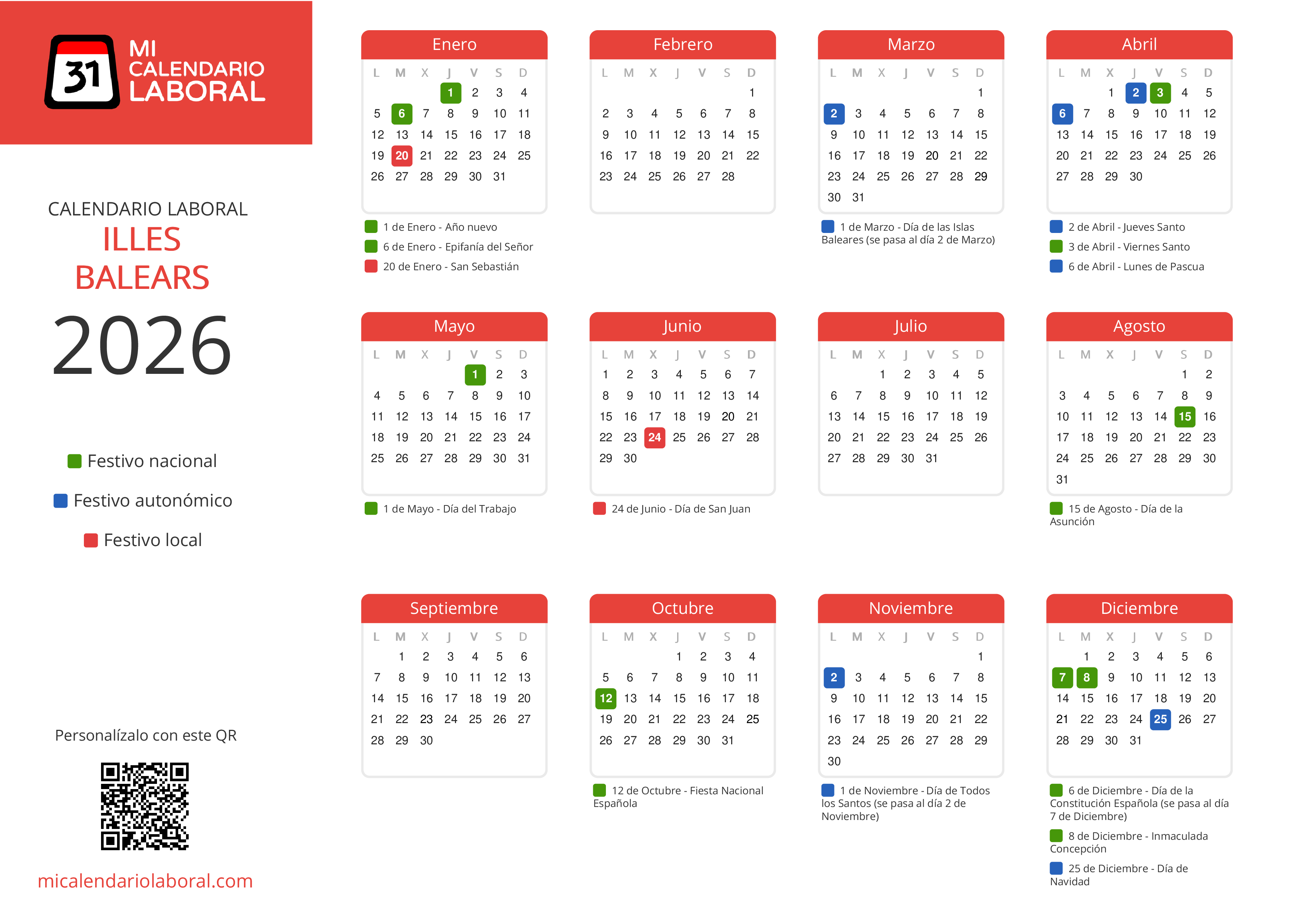 Así quedan los días festivos de Illes Balears en el 2026 con los días festivos locales de Illes Balears: