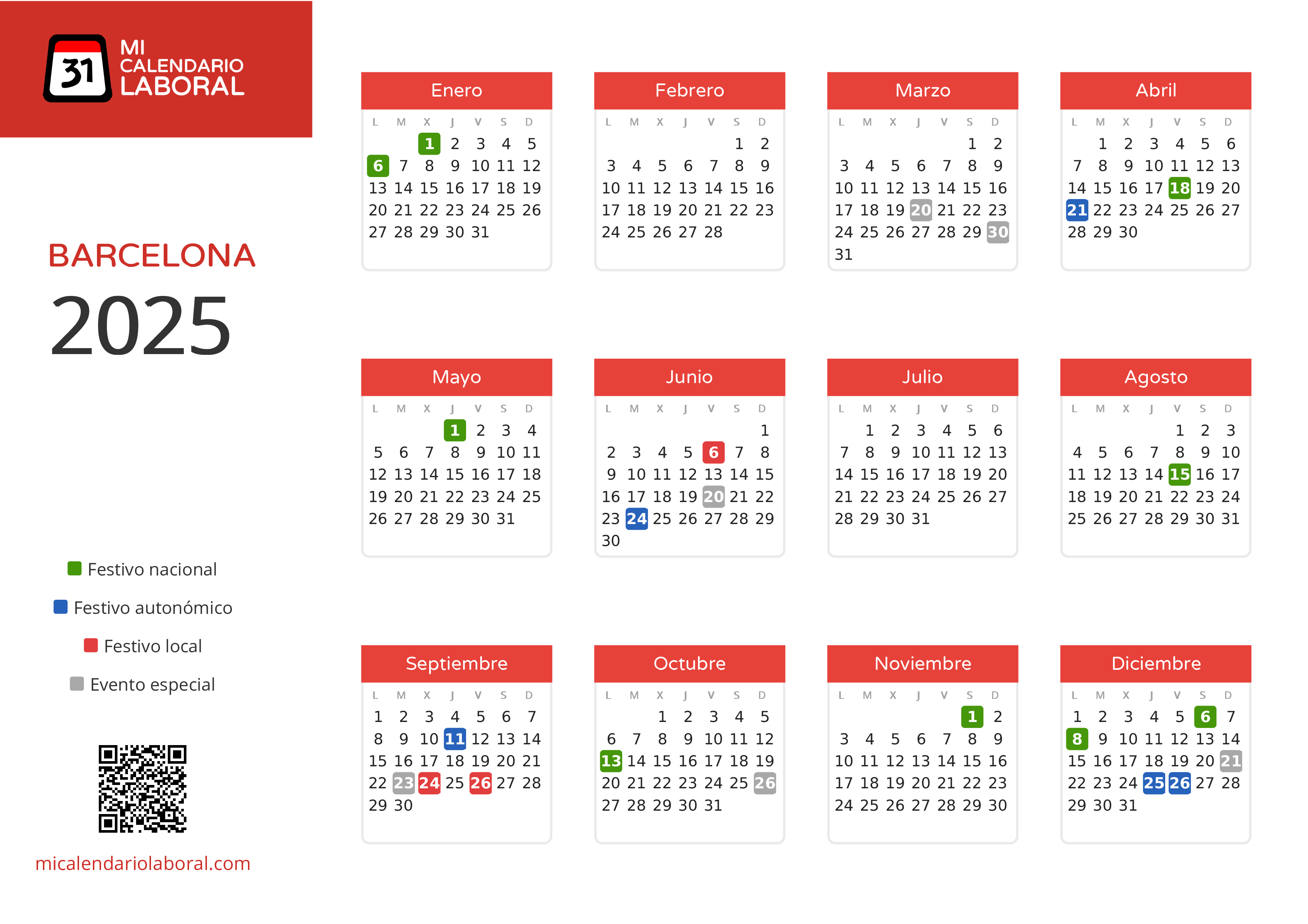 El calendario laboral del año 2025 contará con 14 días festivos. En complemento a las 7 festividades nacionales y las 5 asignadas por Generalitat de Catalunya, los municipios suman 2 celebraciones locales.