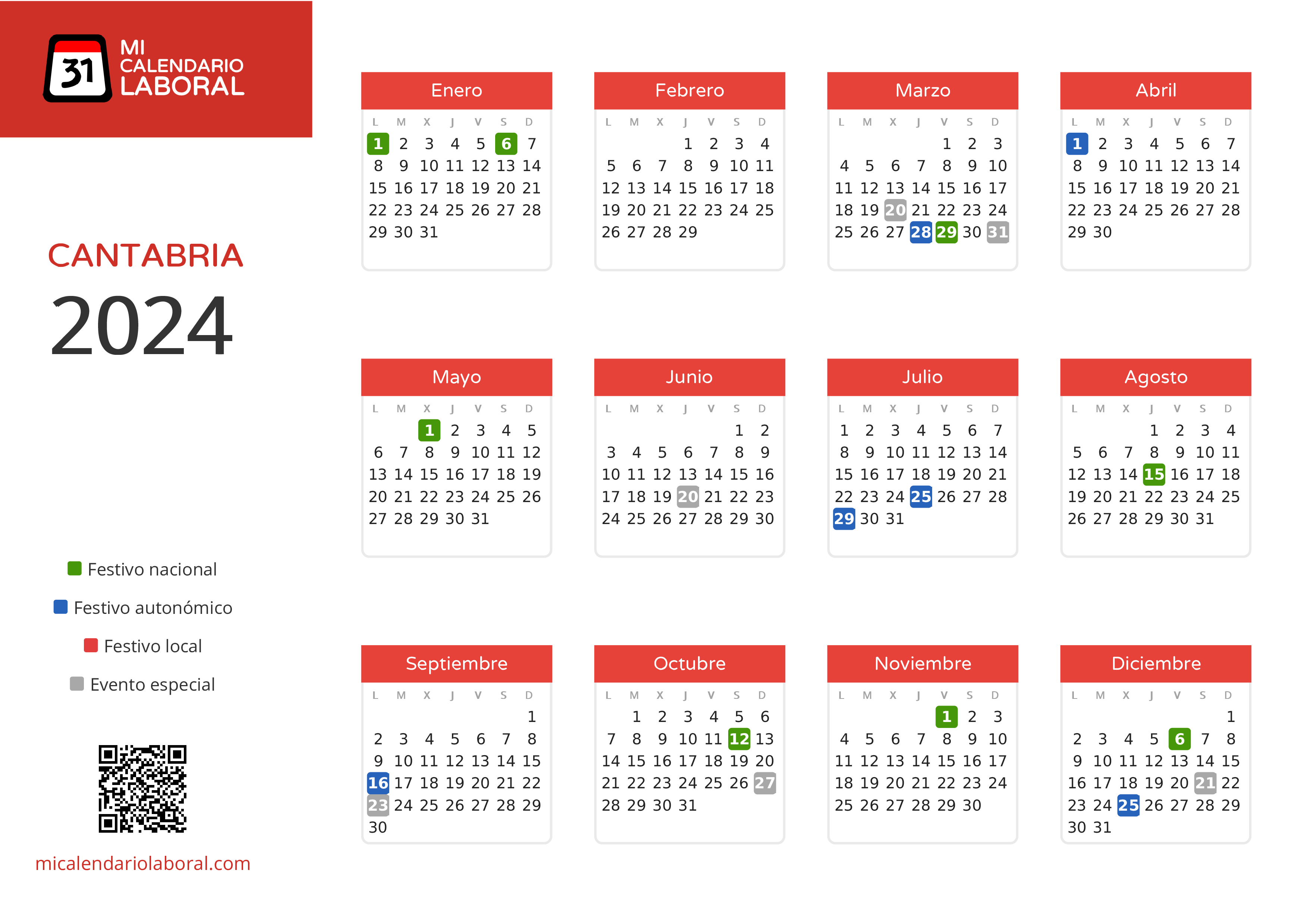 Así quedan los días festivos de Cantabria en el 2024 con los días festivos locales de Cantabria: