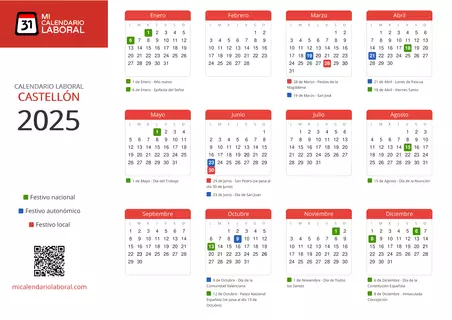 Así quedan los días festivos de Comunitat Valenciana en el 2025 con los días festivos locales de Castellón: