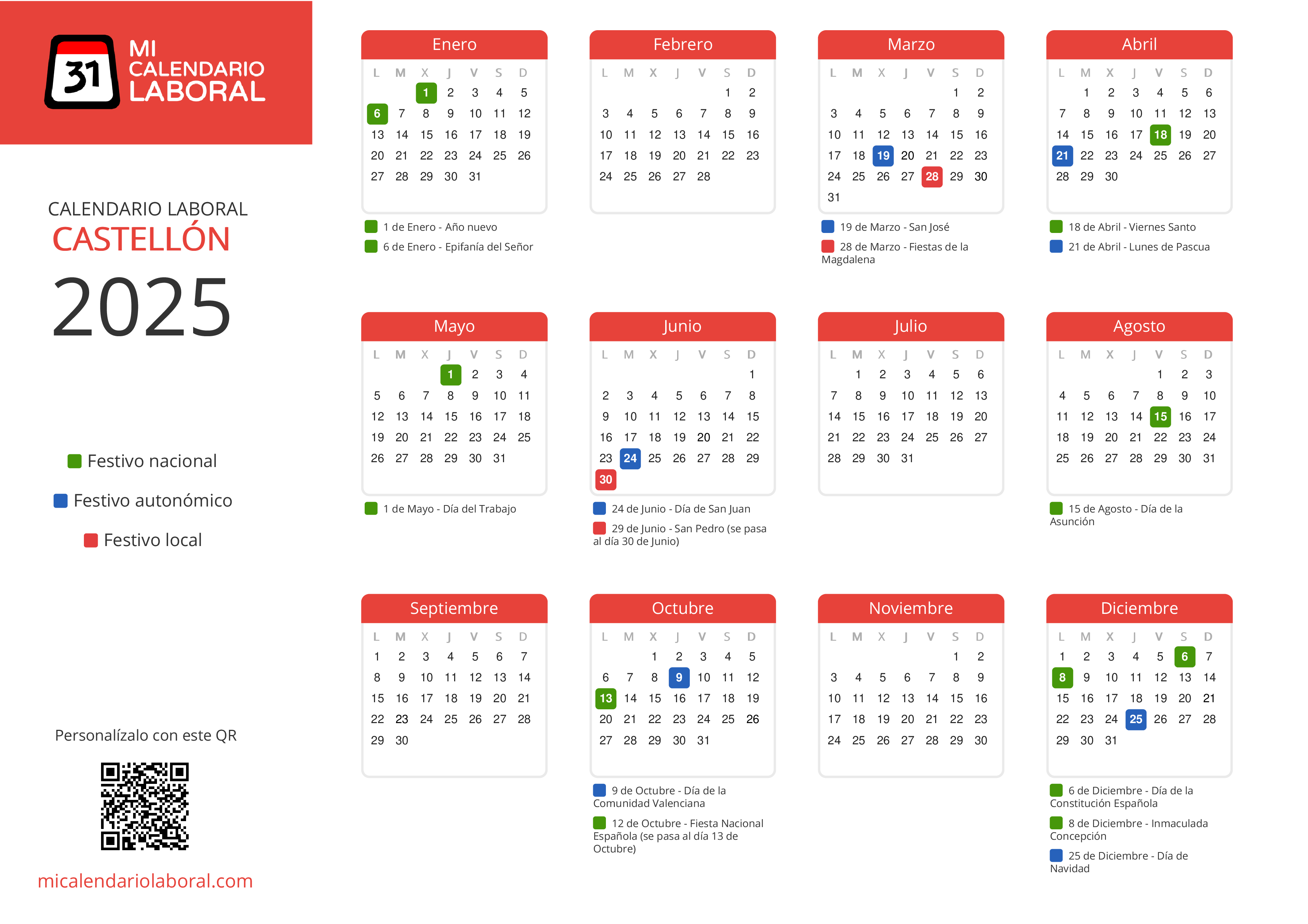 Estos son los días no laborables y festivos en Castellón, conforme a lo establecido por el Ministerio del Trabajo y Generalitat Valenciana.
