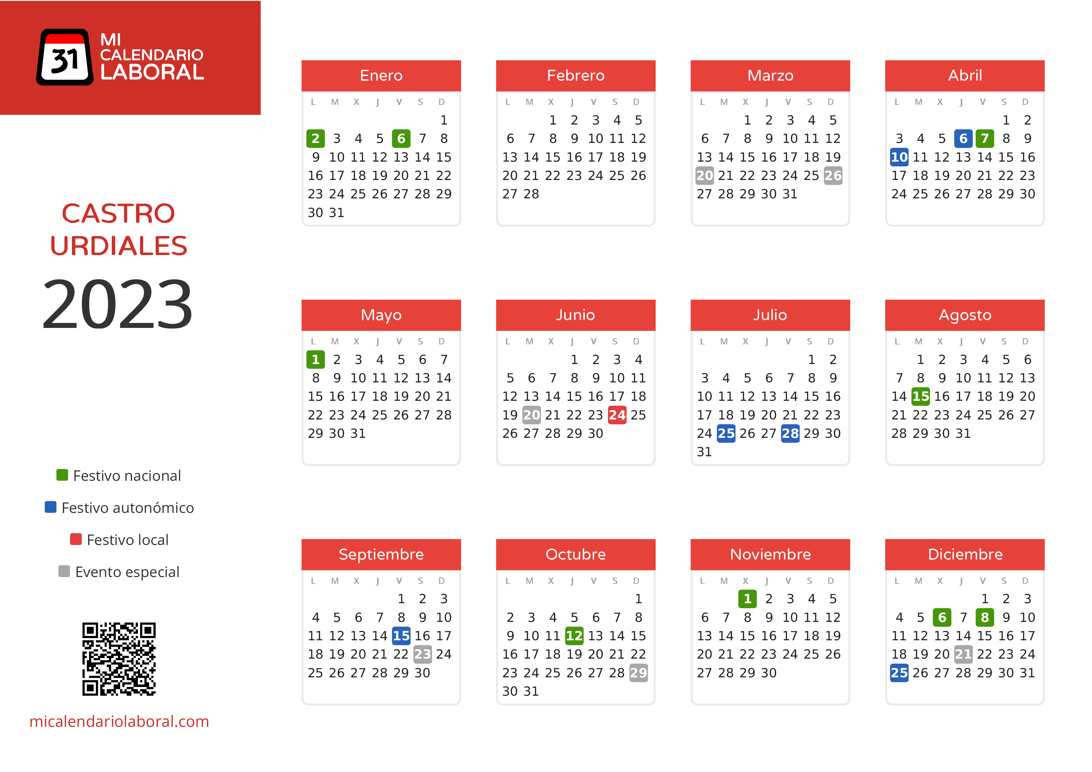Durante 2023, en Castro Urdiales habrán 1 festivos locales, a destacar los siguientes: Día de San Juan . Estas celebraciones son exclusivas de sus respectivos municipios.