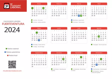 Estos son todos los días no laborables y días inhábiles correspondientes a Fuerteventura, proporcionados por el Ministerio del Trabajo y Gobierno de Canarias.