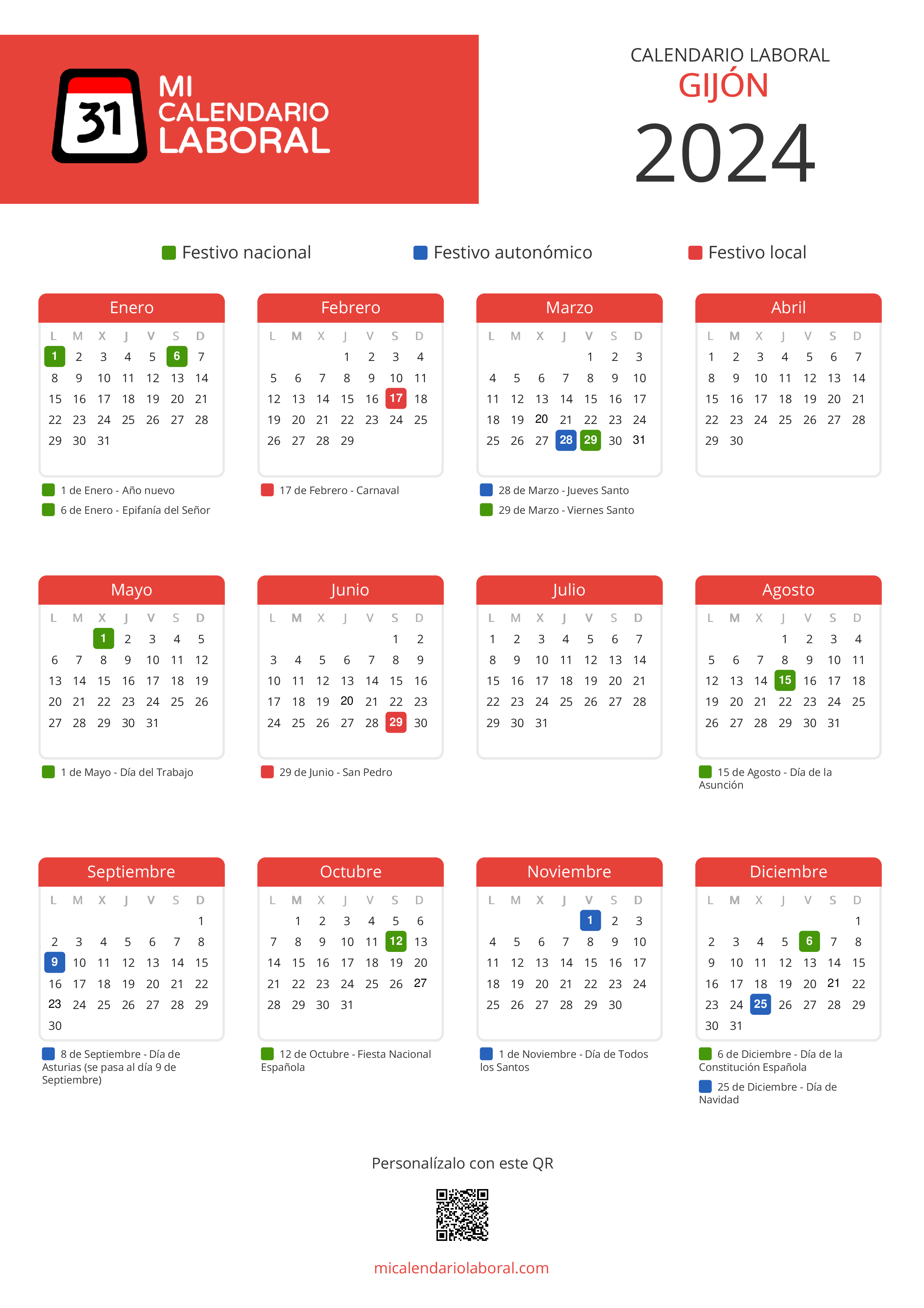 Así quedan los días festivos de Principado de Asturias en el 2024 con los días festivos locales de Gijón: