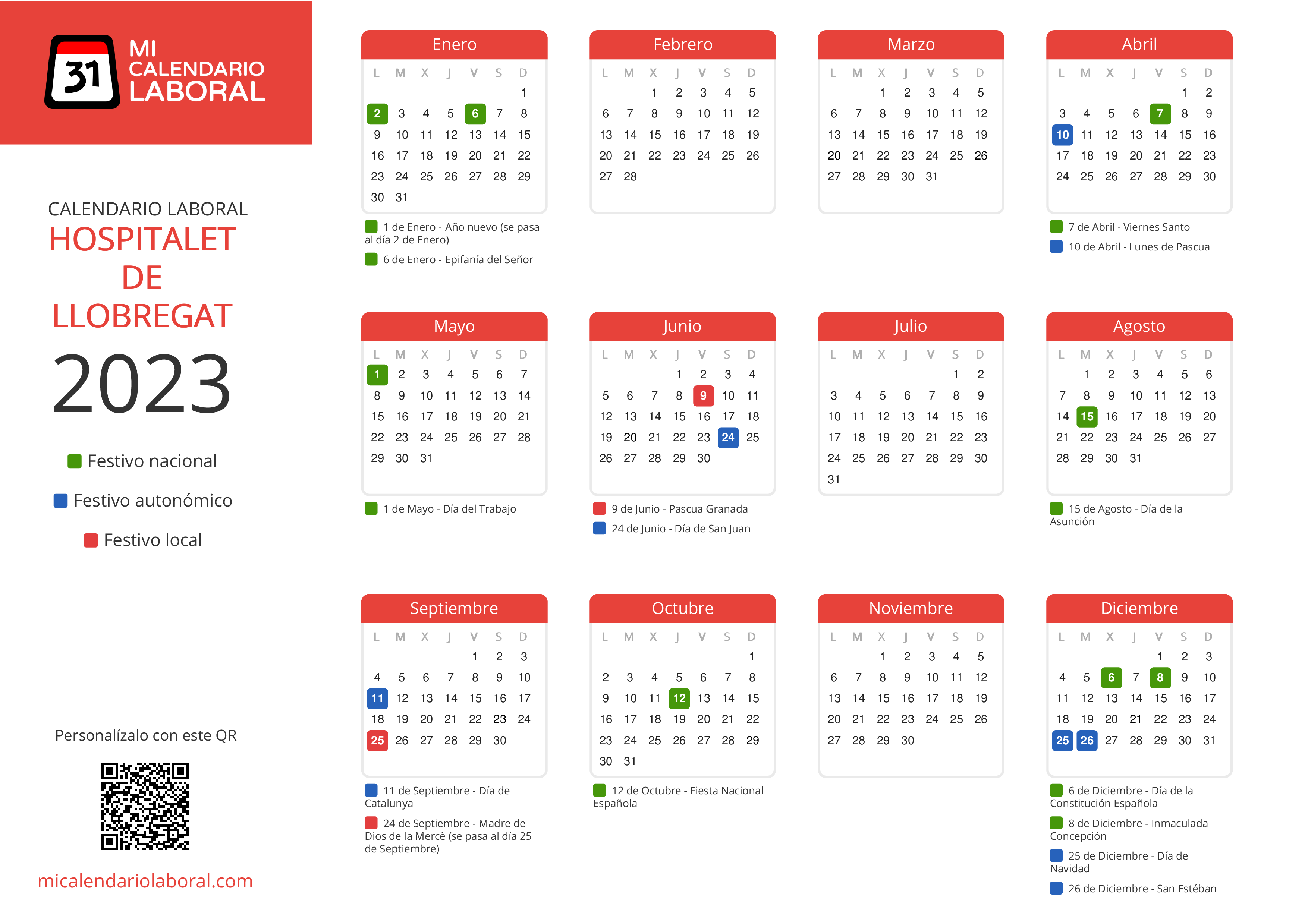 Almanaque de festivos en Hospitalet de Llobregat para el año 2023
