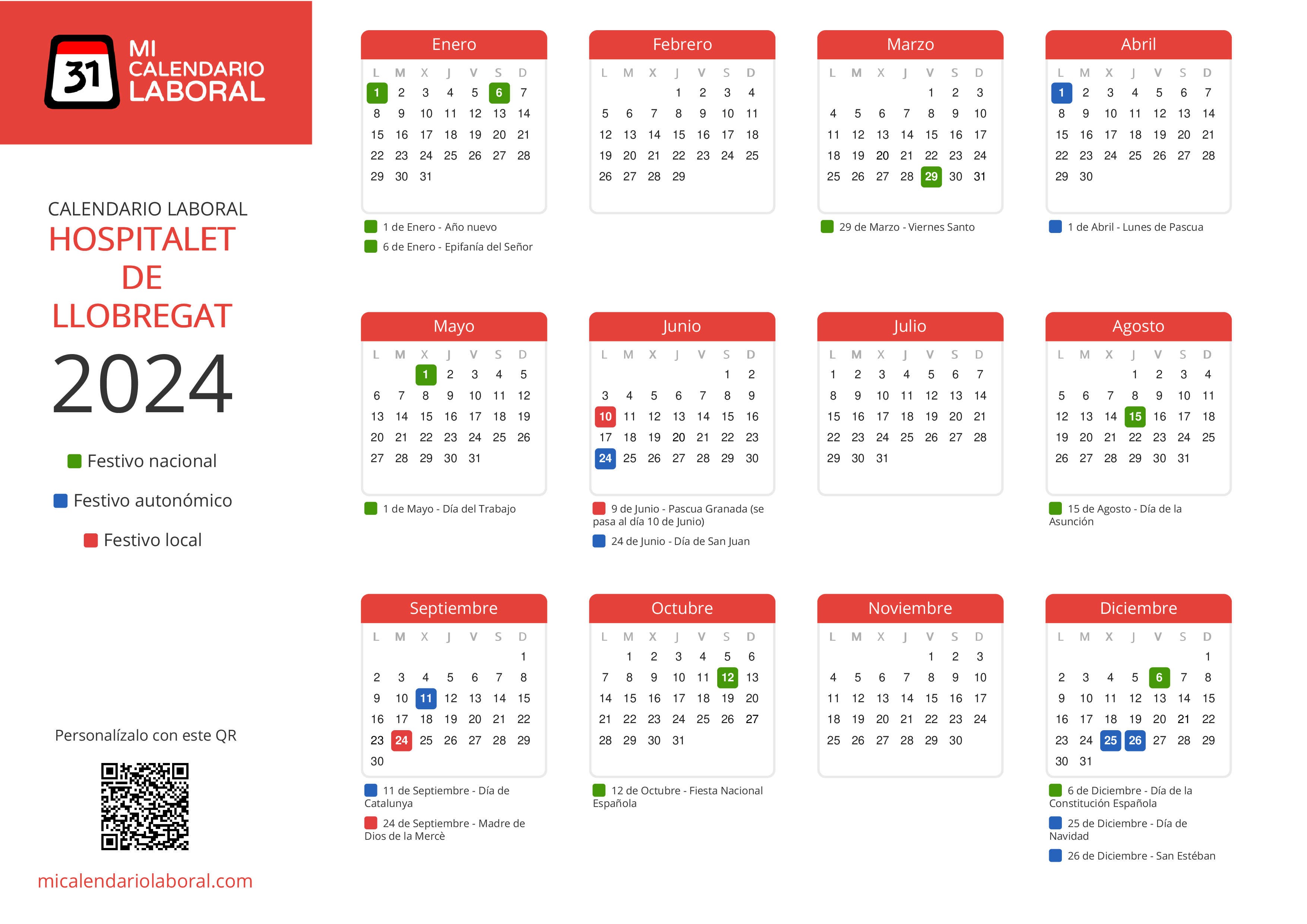 Almanaque de festivos en Hospitalet de Llobregat para el año 2024