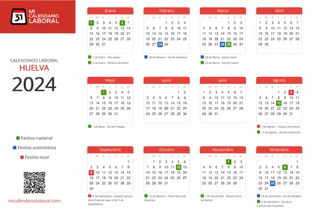 Almanaque de festivos en Huelva para el año 2024