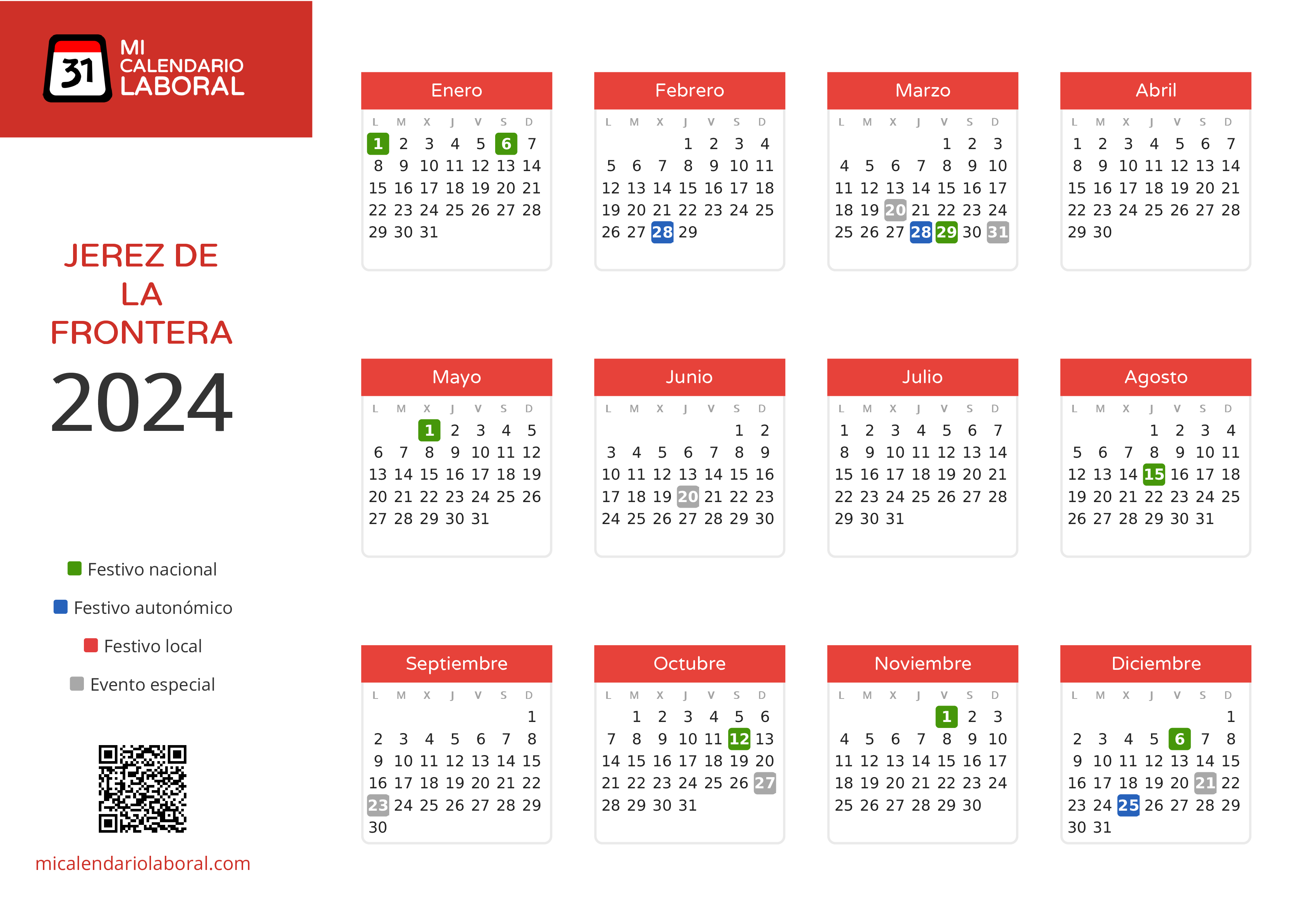 Almanaque de festivos en Jerez de la Frontera para el año 2024