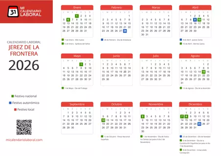 Almanaque de festivos en Jerez de la Frontera para el año 2026