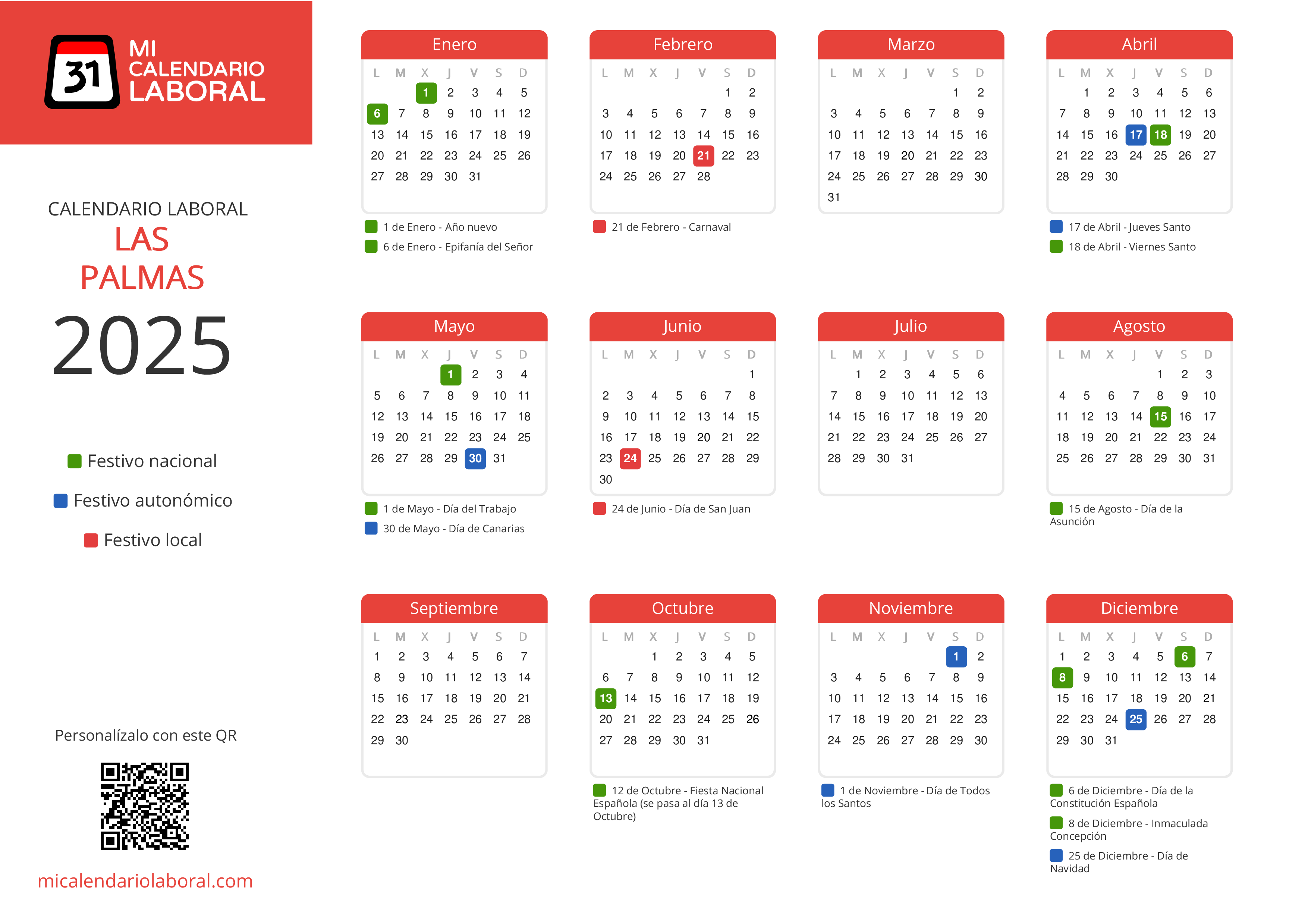 Así quedan los días festivos de Canarias en el 2025 con los días festivos locales de Las Palmas: