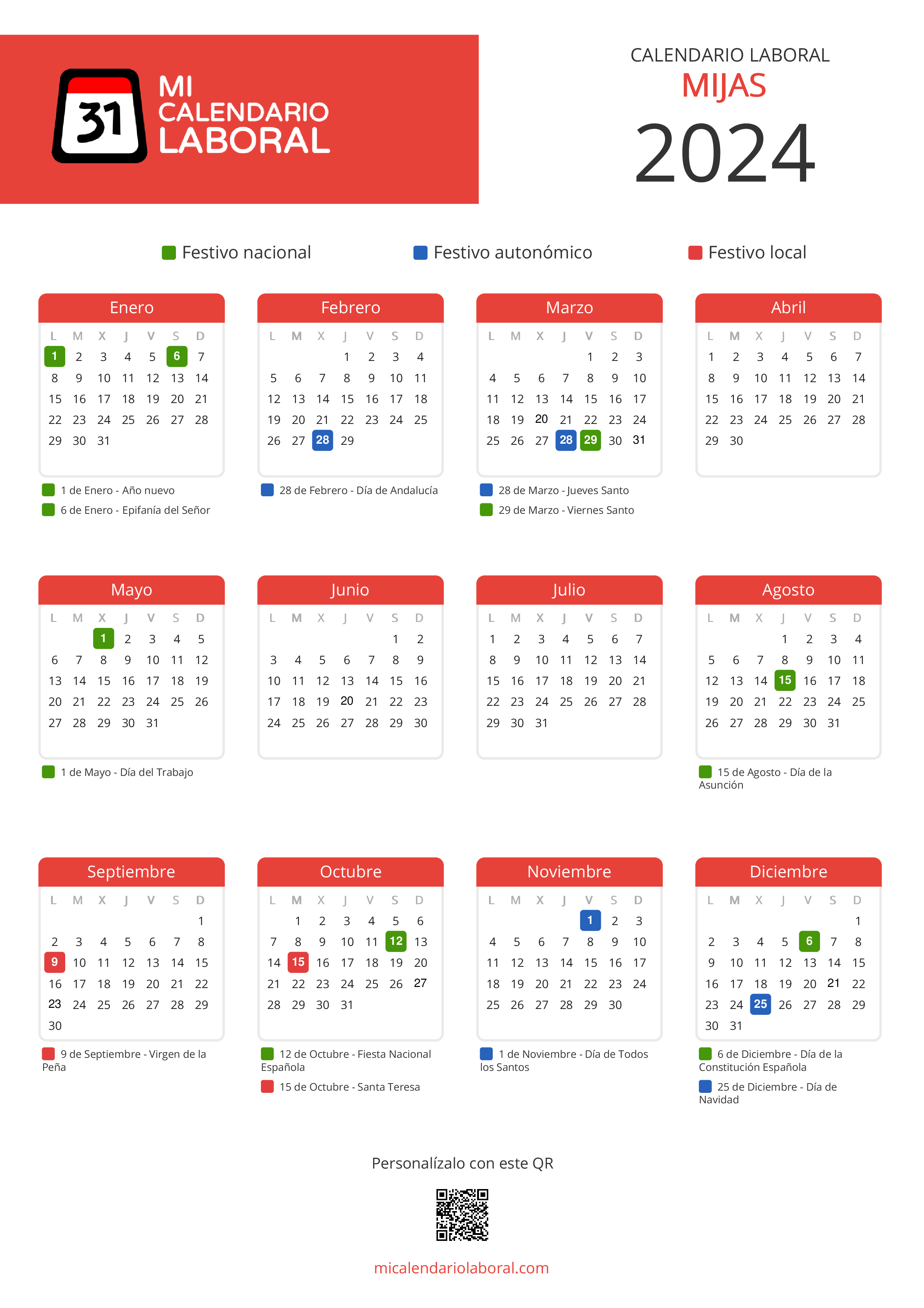 Así quedan los días festivos de Andalucía en el 2024 con los días festivos locales de Mijas: