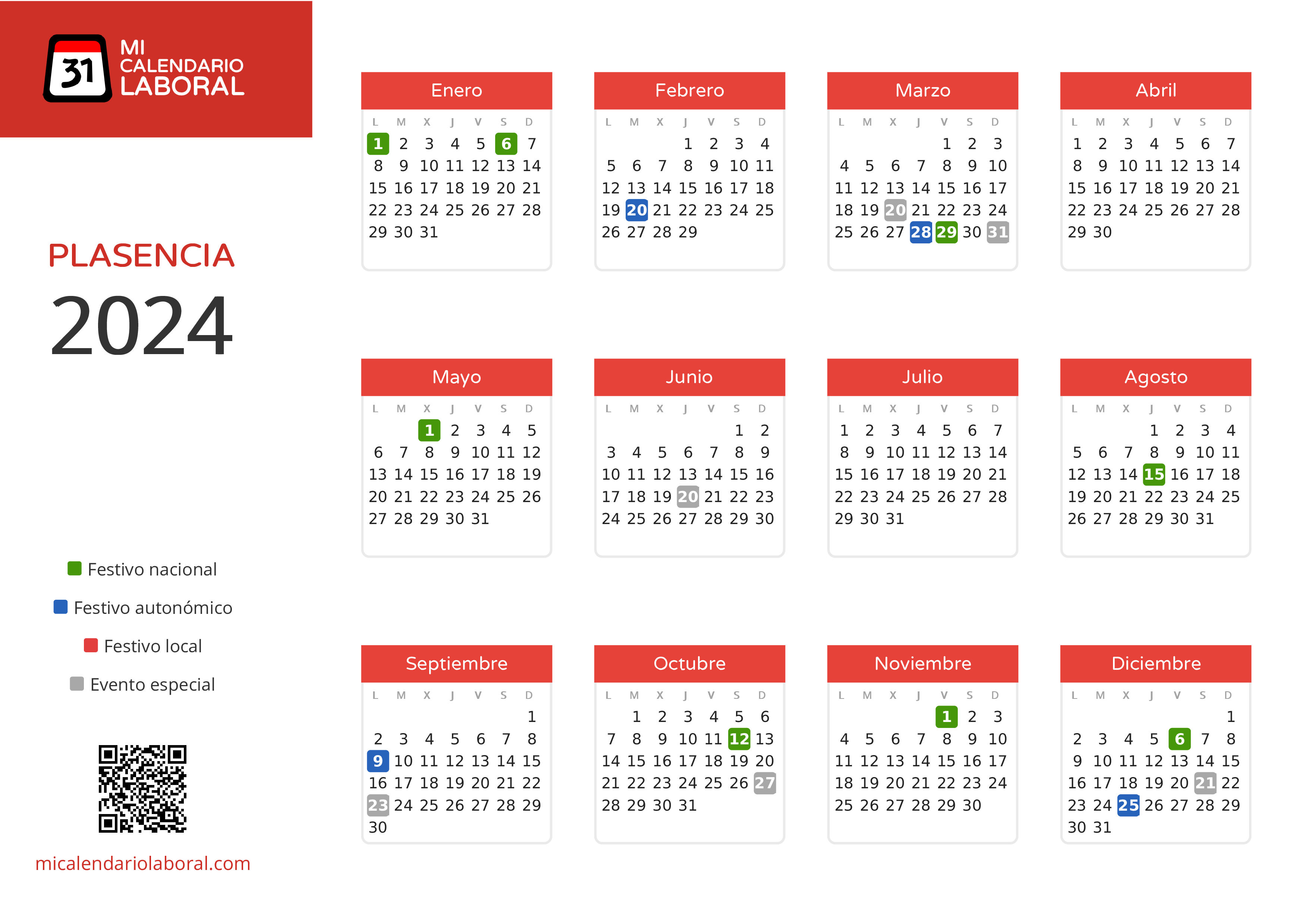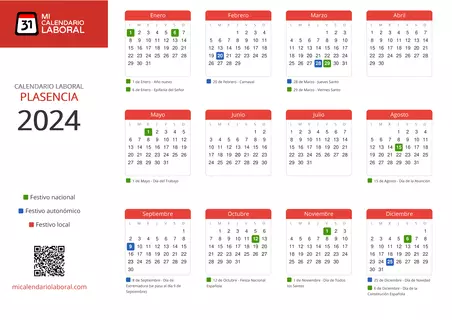 Los días no laborables y días inhábiles en Plasencia son listados a continuación, basados en la información del Ministerio del Trabajo y Junta de Extremadura.