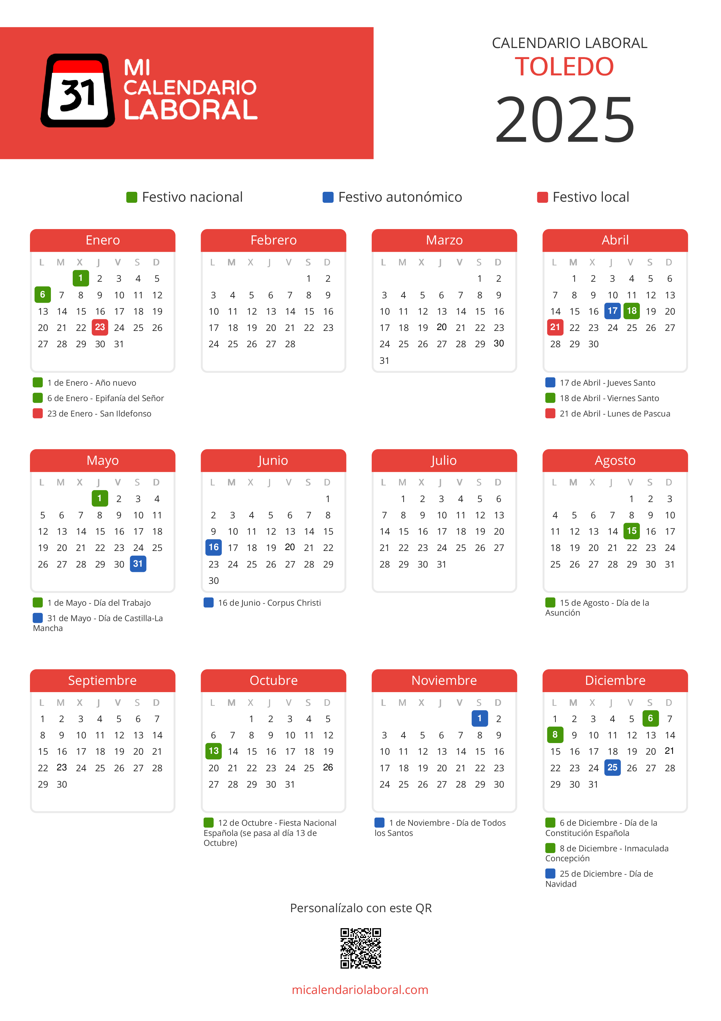 Almanaque de festivos en Toledo para el año 2025