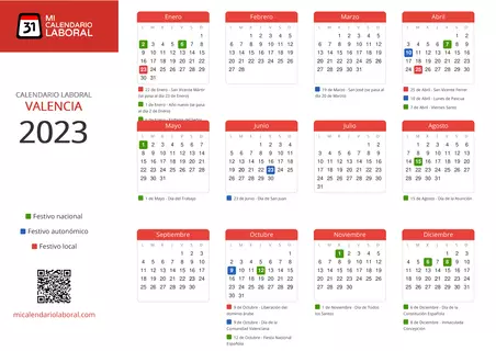 Almanaque de festivos en Valencia para el año 2023