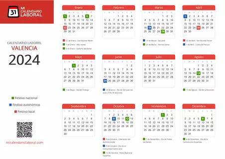 En Valencia, estos son los días no laborables y días no laborables, según lo dispuesto por el Ministerio del Trabajo y Generalitat Valenciana.