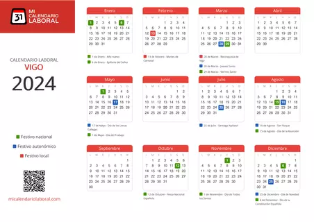 El calendario del año 2024 contará con 13 días festivos. Junto con las 7 fiestas nacionales y las 5 otorgadas por Xunta de Galicia, cada municipio añade 1 festividades locales.